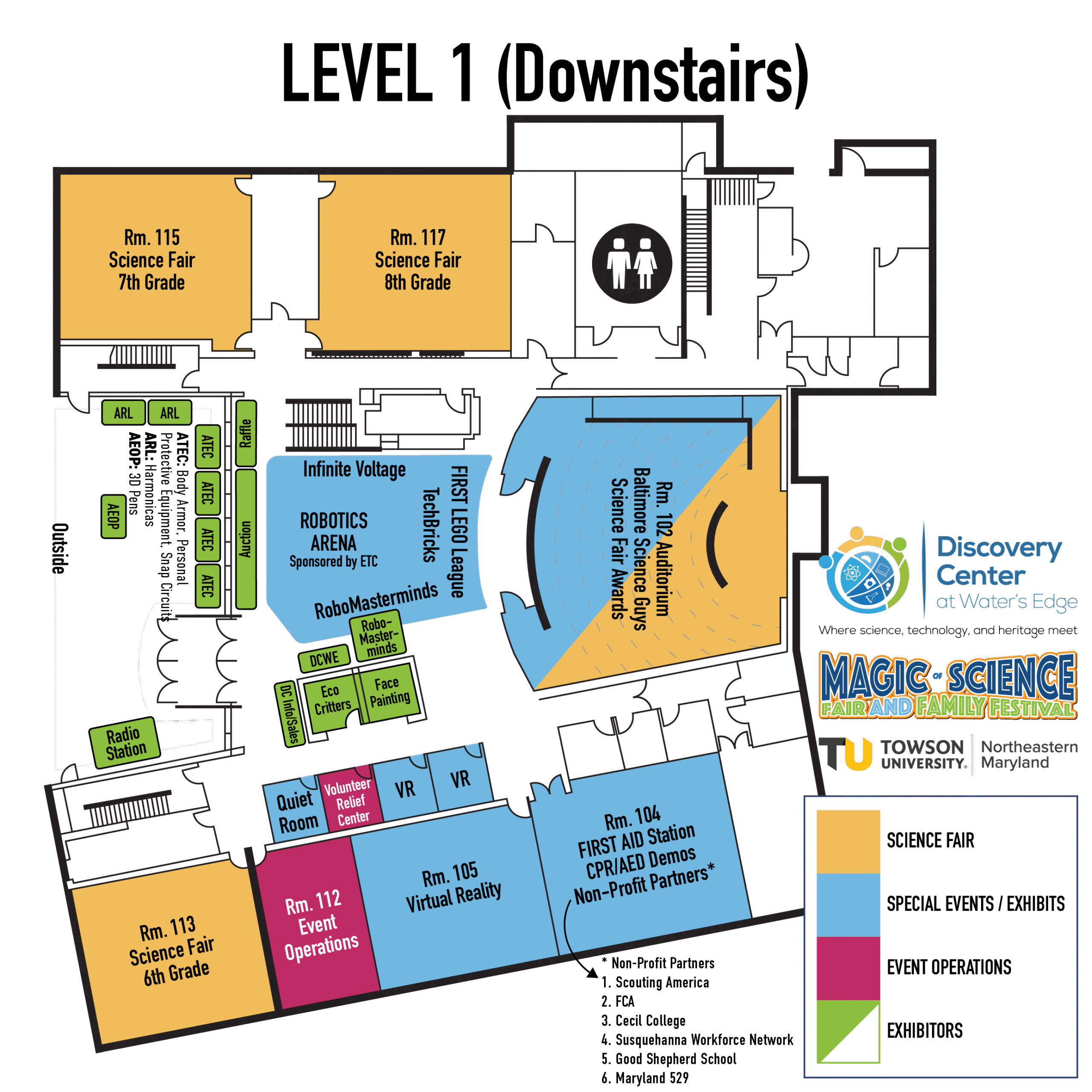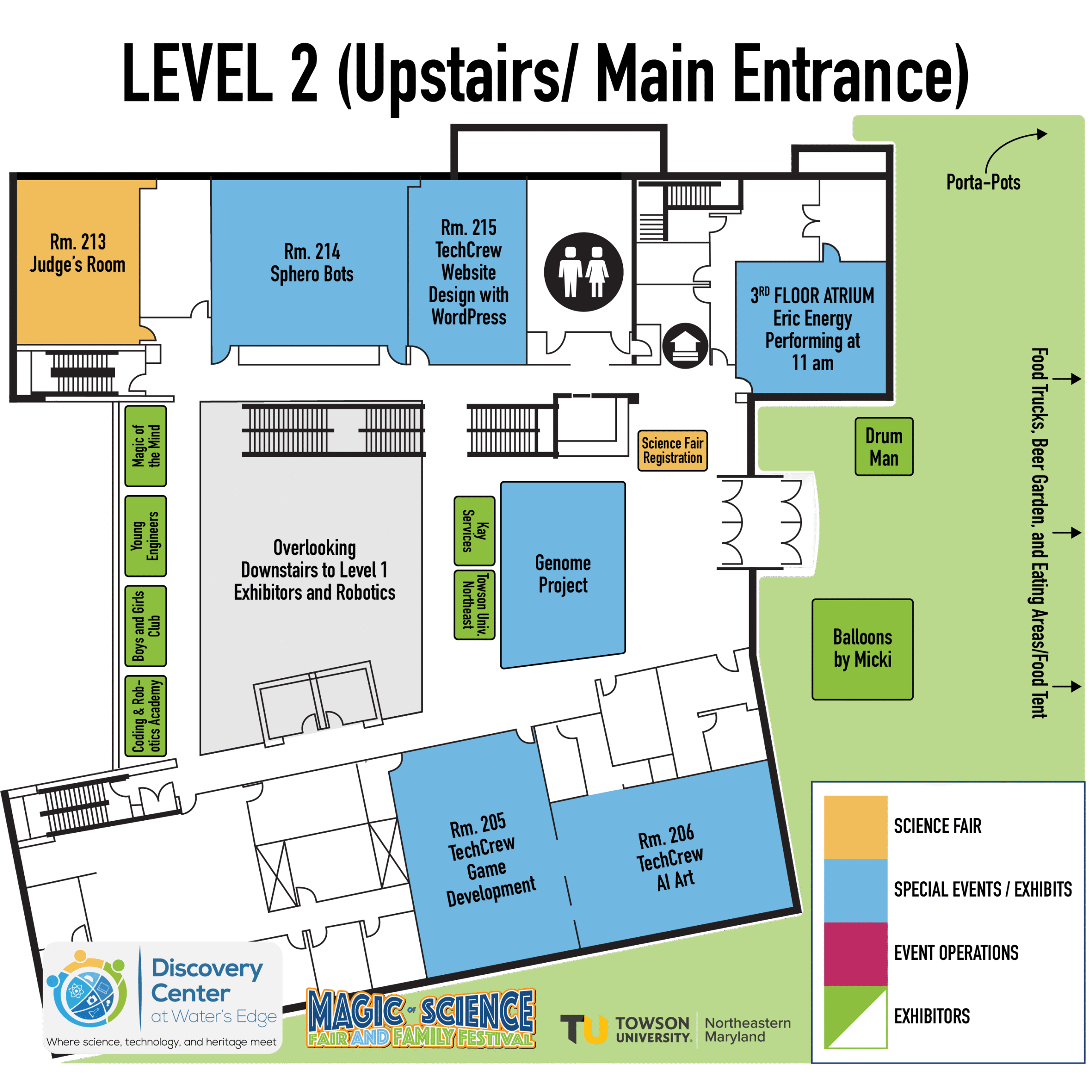 Magic of Science Fair participants should plan to arrive 7–8 am, depending on complexity of setup. Turn in at Entrance 7, 510 Thomas Run Road, (see Overview Map) and enter the building at the main entrance of the Towson University Northeast (TUNE) Maryland Building. A sign-in table will be located directly to your right. From there, you will be directed to the location for your project set-up. Judging begins at 9 am. The Awards Ceremony starts at 2:30 pm, in the Auditorium, Room 102.